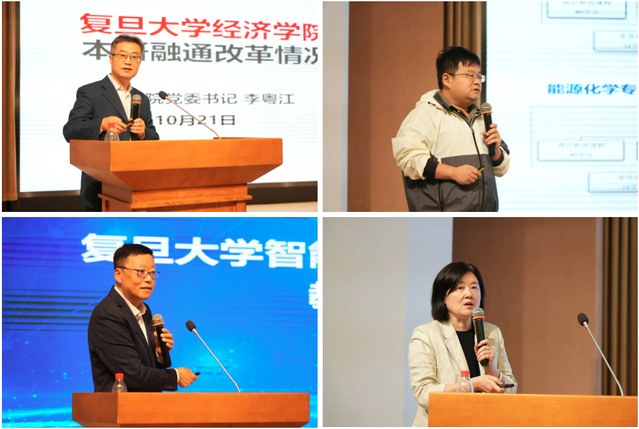 在院系交流環節,經濟學院黨委書記李粵江、化學系副系主任喬亮、智能機器人與先進制造創新學院副院長張立華、公共衛生學院副院長何更生代表全校的研究生培養單位作交流發言,分享各自本研融通人才培養模式改革情況。